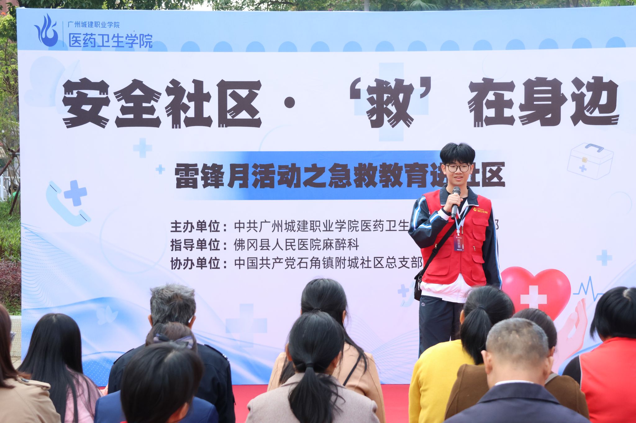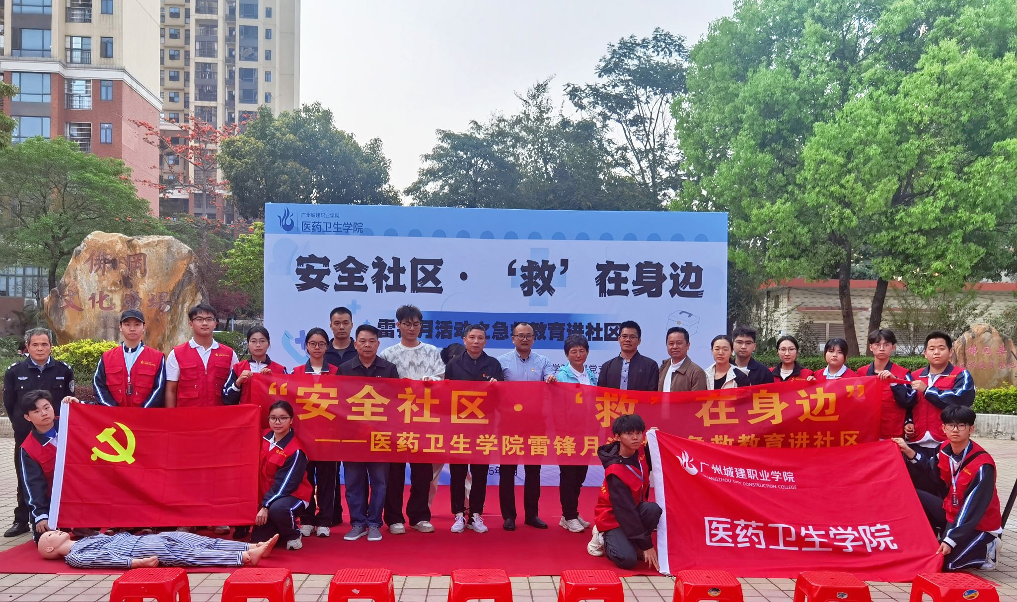 在第62个“学雷锋纪念日”来临之际,我院党支部积极响应《健康中国2030》战略的号召,携手佛冈县人民医院的一线医护人员,组织党员师生志愿者走进附城社区开展急救教育公益活动。