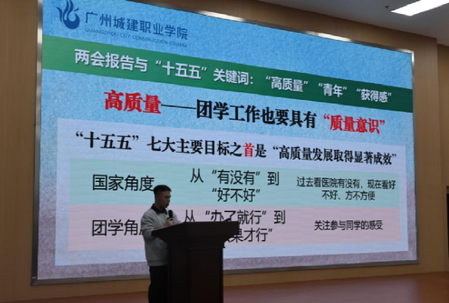 讲座最精彩的环节,当属陈老师将国家“十五五”规划的十大发展板块,与团学工作举措、个人成长路径一一对应,深入浅出地阐释了“大我与小我”的同频共振。他特别强调:二十岁到二十五岁,是一个人价值观定型、能力提升、视野拓展的关键期;而未来五年,恰是国家迈向现代化的重要节点。“这不是巧合,这是时代赋予你们的使命。”陈老师的话引发在场同学的深思与共鸣。