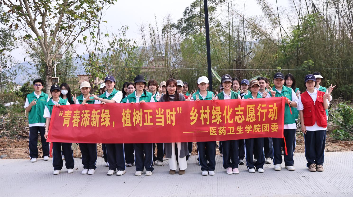 春和景明,万象更新,植绿护绿正当时。为深入践行绿色发展理念,牢固树立“绿水青山就是金山银山”的生态理念,助力绿美广东生态建设,引导青年学子以实际行动守护生态、奉献青春。3月19日下午,医药卫生学院团委联合佛冈县水头镇团委、未来技术应用学院团委,在水头镇莲瑶村共同开展“青春添新绿,植树正当时”植树节主题活动,一场与春天的绿色之约,在乡间田野温情启幕。