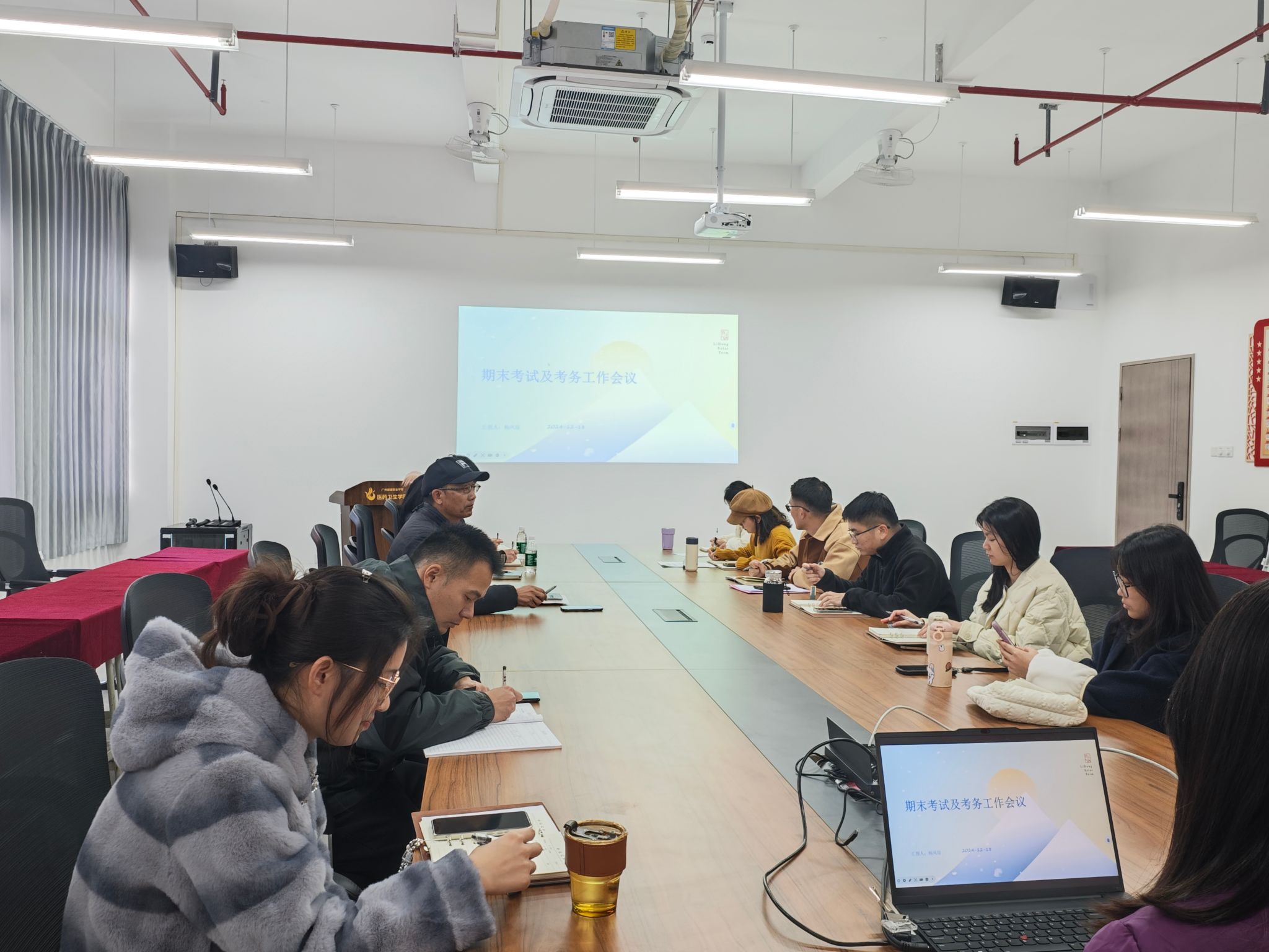 副院长杨凤琼对期末考试及考务工作安排做了全面且细致的部署。她强调每一个环节都关乎考试的顺利进行,不容有丝毫懈怠。在期末监考工作方面,提出了明确且严格的要求:其一,监考教师需认真查看《监考任务书》和《期末考试安排表》,仔细核对监考的场地及时间,保证按时参加监考,杜绝因信息误差而出现的缺岗情况;其二,监考教师要提前到达考场,全面检查考场情况,妥善做好考场的安排提示,引导并组织学生按座位号有序就座,营造良好的考试开端;其三,监考教师要严格履行监考职责,在组织学生入场后,严谨细致地做好相关检查工作,并如实做好考场情况记录,确保考场内的一切情况都有据可查;其四,监考教师必须严格维护考场纪律,秉持对违纪、作弊行为零容忍的态度,一旦发现相关情况,要立即如实记录,并妥善保留作弊证明材料,以严肃考风考纪,维护考试的公平公正。