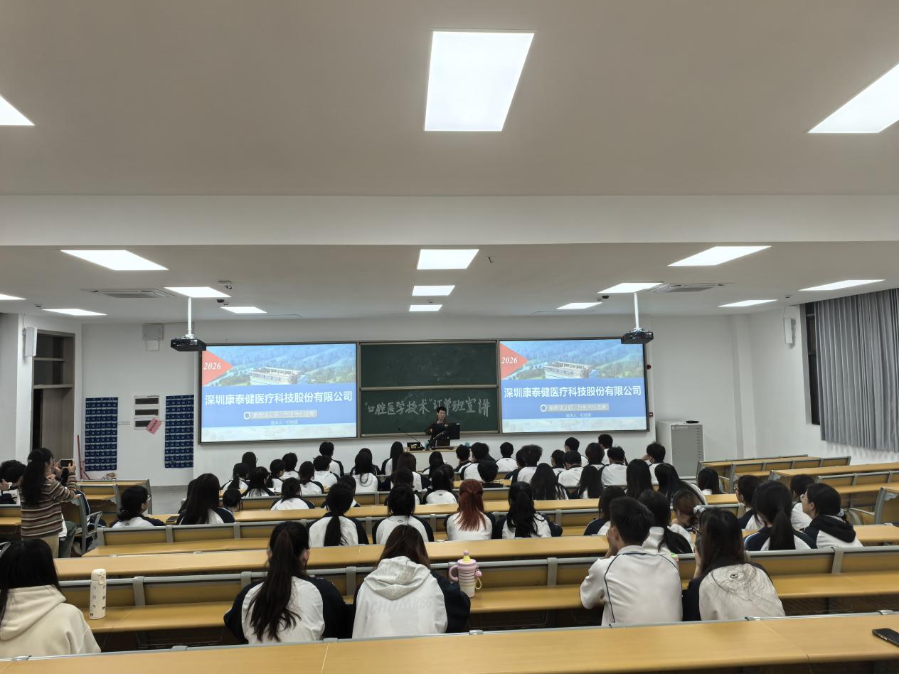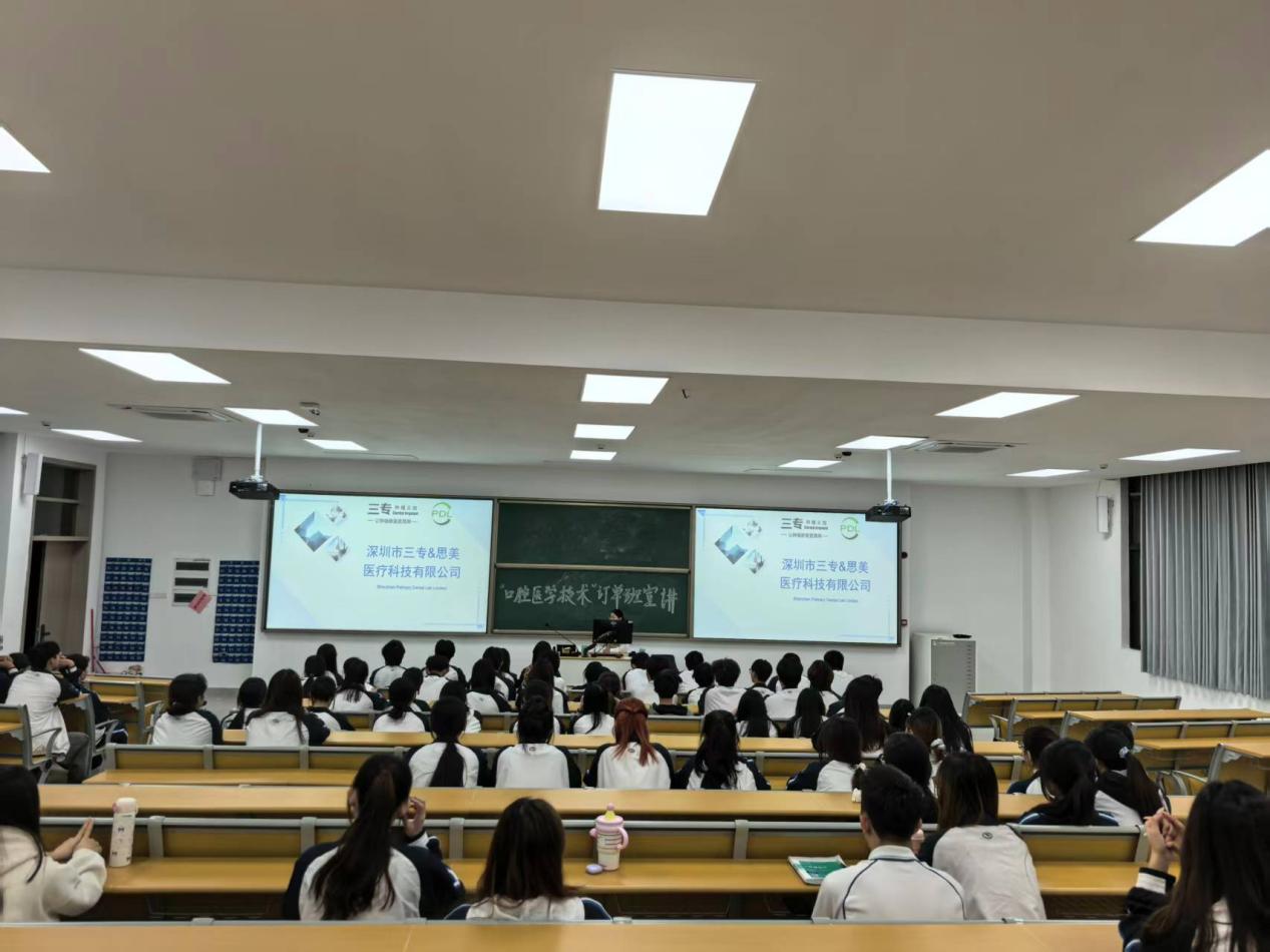 为深化产教融合、破解口腔医学技术行业人才供需结构性矛盾,11月26日,我院迎来深圳康泰健医疗科技股份有限公司、康泰健美医疗科技(深圳)有限公司、深圳市三专医疗科技有限公司三家行业领军企业,开展“1.5+1.5”订单班合作洽谈,并面向24级口腔专业学生举办专场宣讲会,吸引上百名学子到场咨询参与,现场互动热烈。